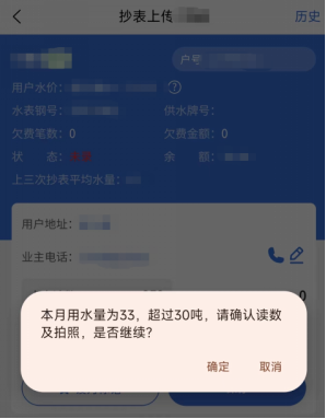 年初,公司完成智慧水務(wù)平臺營收系統(tǒng)升級,新增了手機抄表、數(shù)電發(fā)票開具、掃碼評價等功能,其中“手機抄表”實現(xiàn)了用水量異常預(yù)警,在實際運用中發(fā)揮了重要作用。在宜城窯灣八隊武先生家的例行抄表過程中,公司抄表員范云飛、李一可通過“手機抄表”系統(tǒng)錄入數(shù)據(jù)時,“抄表上傳”頁面自動彈出“本次用水量超過30噸”的提醒。經(jīng)與用戶過往平均用水量對比后,抄表員確認該用戶本季度用水量遠超日常,并在進一步觀察中發(fā)現(xiàn)水表持續(xù)緩慢轉(zhuǎn)動,判斷用戶表后可能存在漏水點。